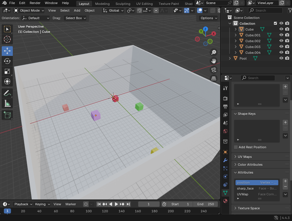 Let’s say we’ve created a simple scene with a pool and some objects inside: